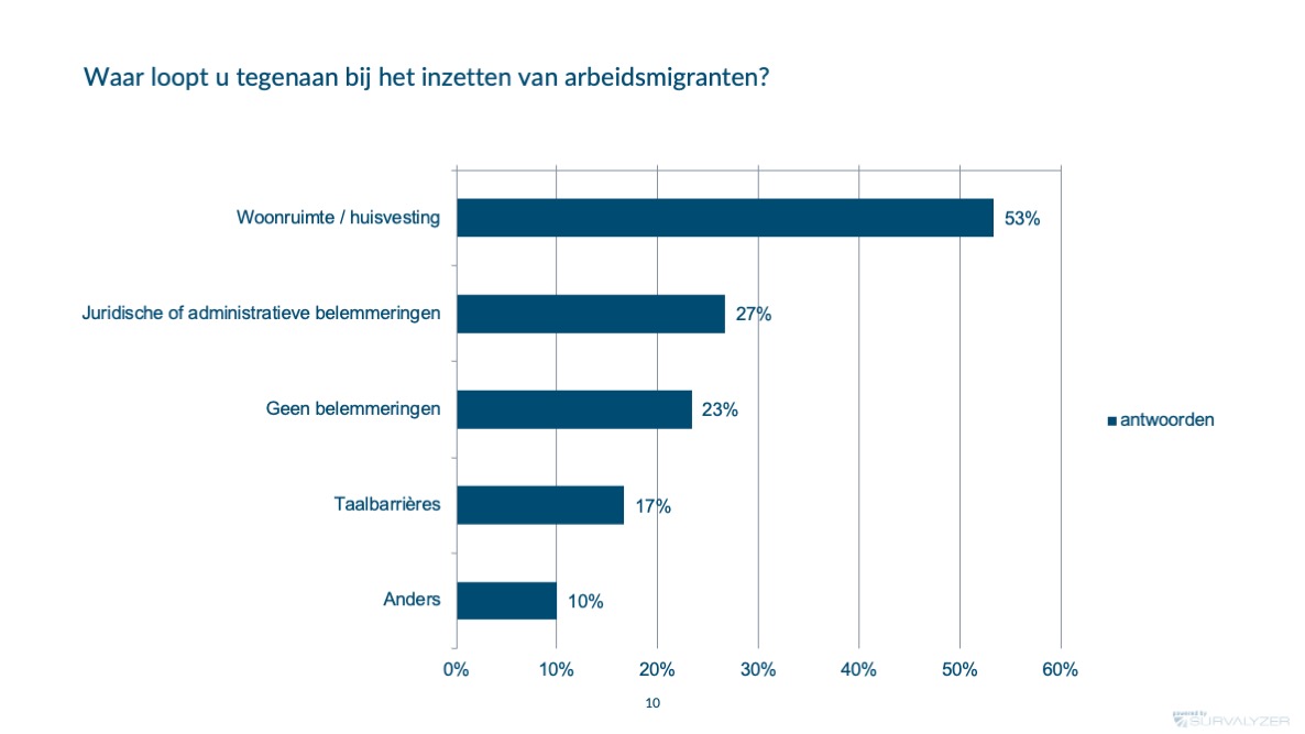 Arbeidsmigranten vormen een belangrijk strategisch instrument voor uitzenders. Meer dan de helft van de bedrijven werkt met personeel uit Oost-Europa. Toch zijn er knelpunten, vooral op het gebied van huisvesting (57,7%), juridische beperkingen en taalbarrières. Ondanks deze obstakels verwacht 37,5% van de uitzenders in 2025 meer arbeidsmigranten in te zetten.