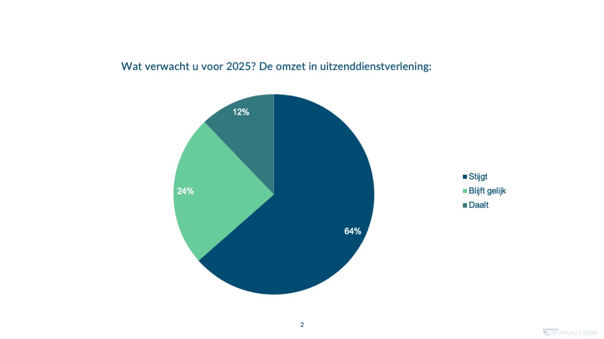 Ondanks de uitdagingen wil bijna 70% van de uitzenders autonoom groeien. Een kwart overweegt overnames, en er is interesse in uitbreiding naar andere sectoren en regio’s. Digitalisering speelt een sleutelrol in deze groei. AI en automatisering worden steeds belangrijker in recruitment, marketing en administratie. Ook duurzaamheidseisen stimuleren investeringen in software en dataverzameling.